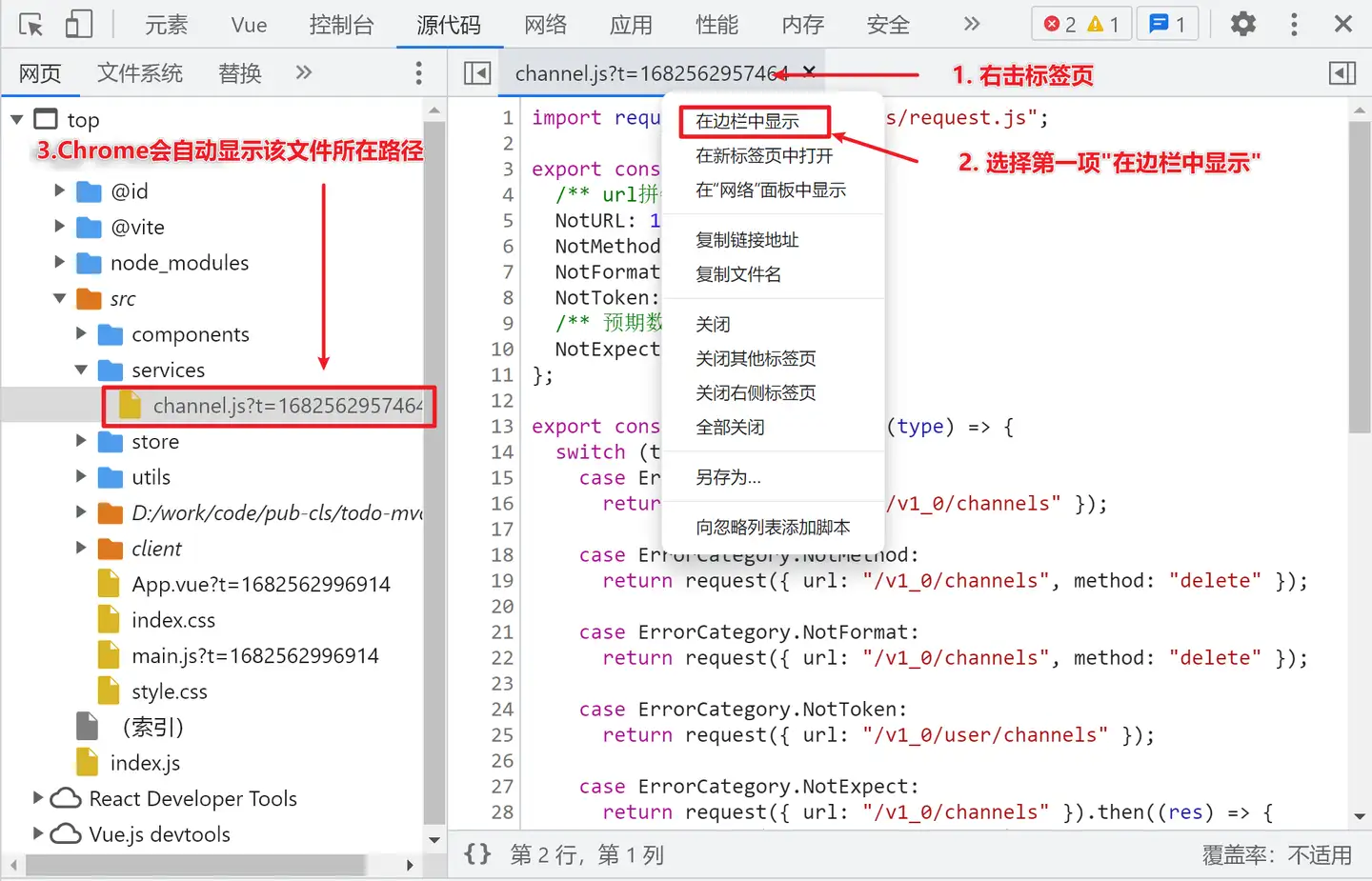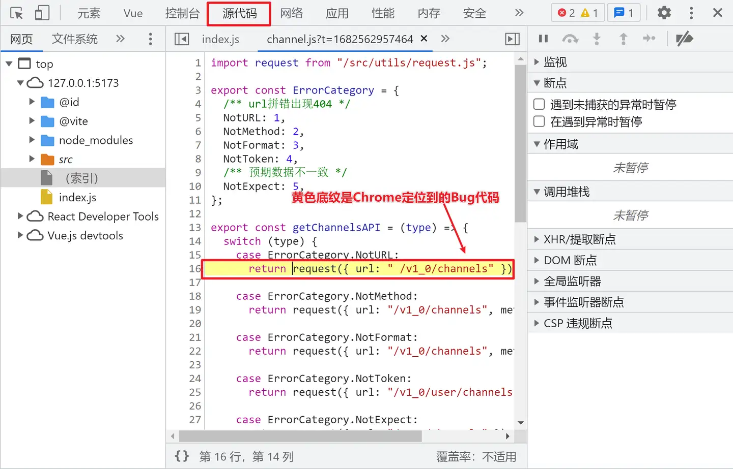 点击报错文件,Chrome调试工具,自动定位到报错位置。
