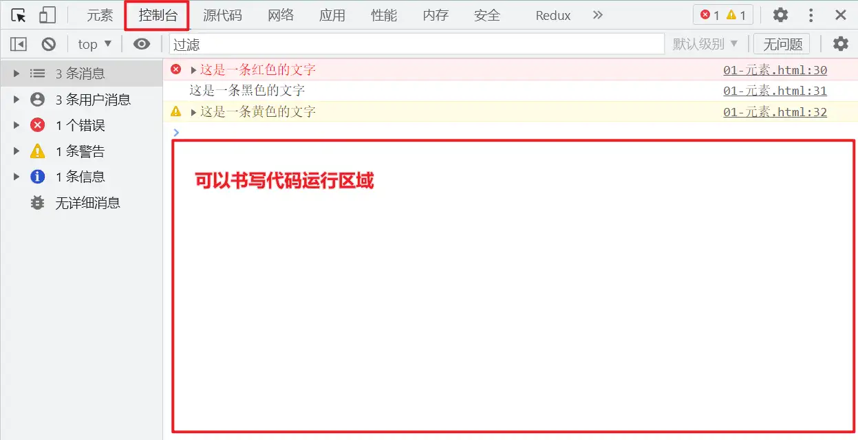 思考:是否留意过控制台报错,有几种类型?各自代表什么?
