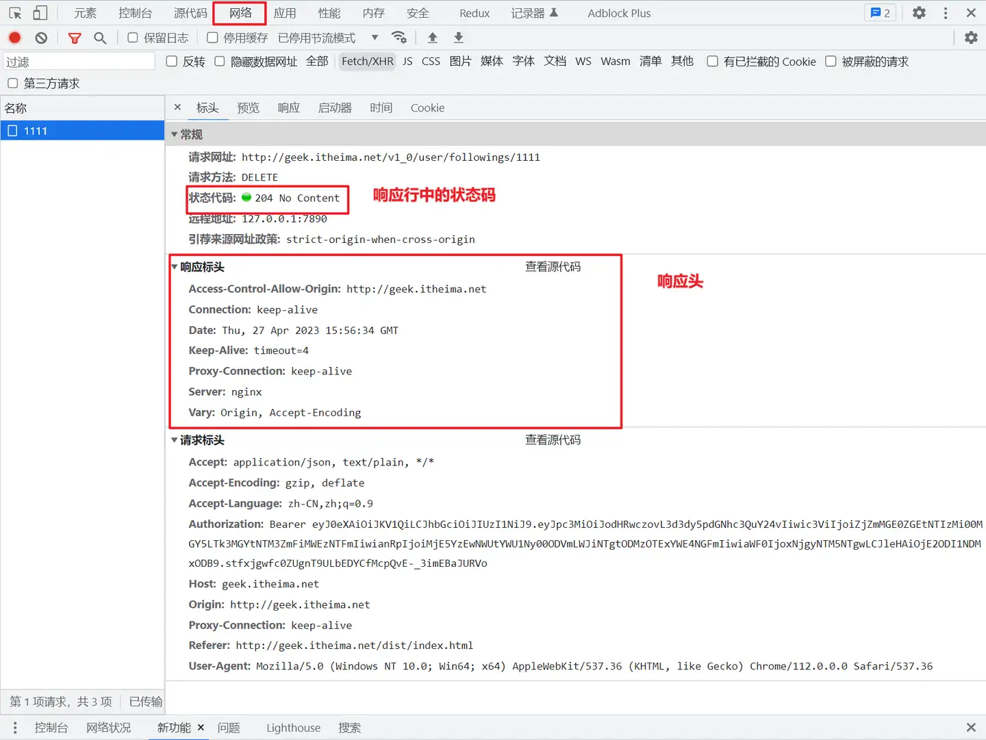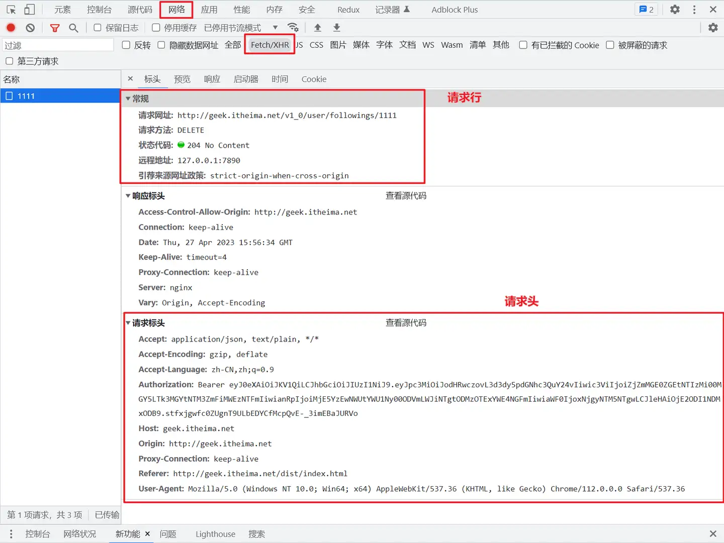 访问示例网站(http://geek.itheima.net/),观察请求信息: