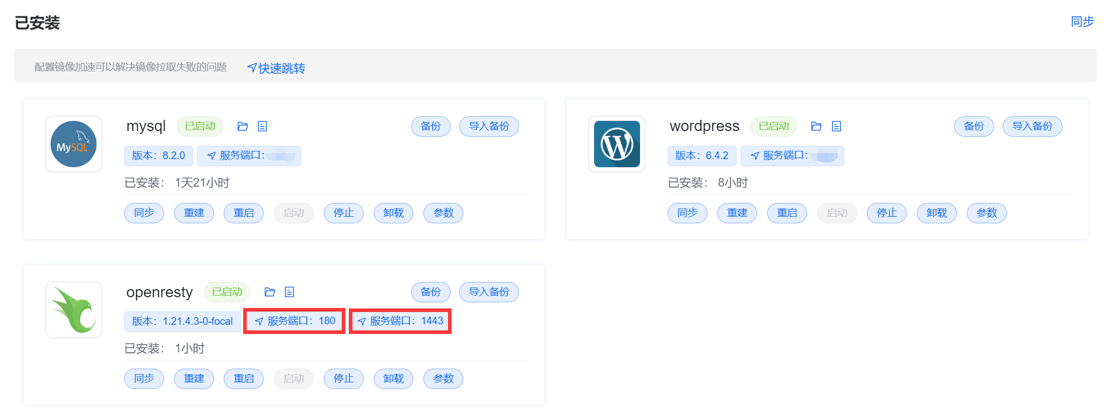 然后在1Panel中安装应用(mysql;wordpress;openresty)