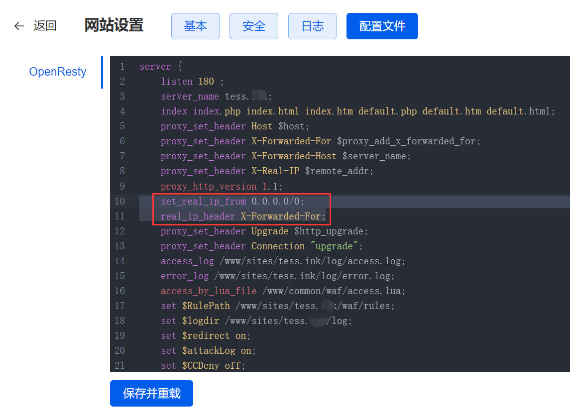 这里的配置是用来将雷池收到的真实ip传递给openresty的