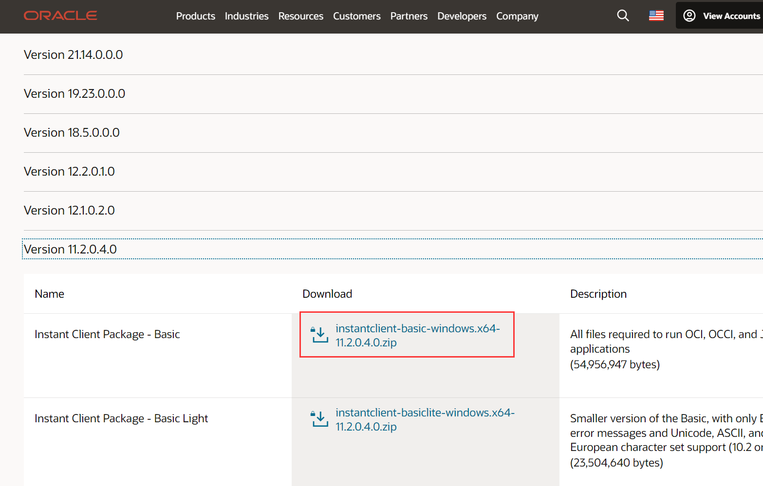 新地址:https://www.oracle.com/database/technologies/instant-client/downloads.html