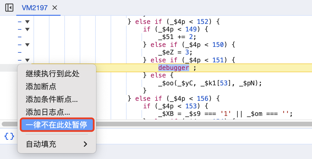展开后,再对这个debugger打断点。