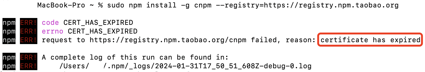 sudo npm install -g cnpm --registry=https://registry.npm.taobao.org