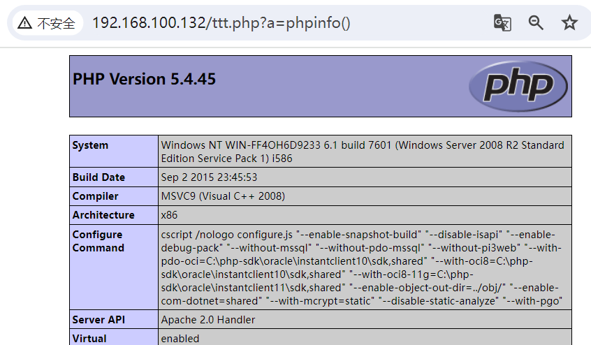 http://192.168.100.132/ttt.php?a=phpinfo()