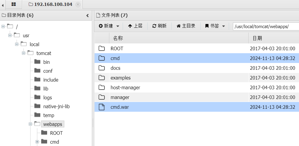 http://192.168.100.104:8080/cmd/cmd.jsp