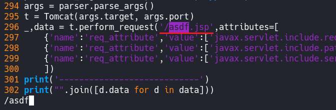 需要对poc进行修改,将包含"/asdf "修改为"/asdf.jsp"