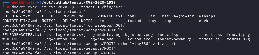 docker cp shell.txtcve-2020-1938-tomcat-1:/usr/local/tomcat/webapps/ROOT