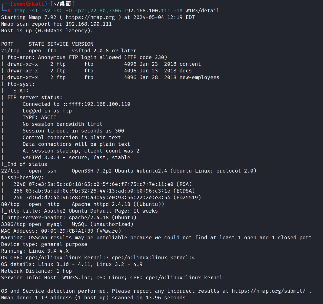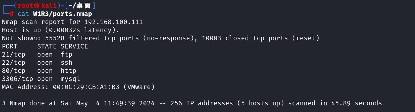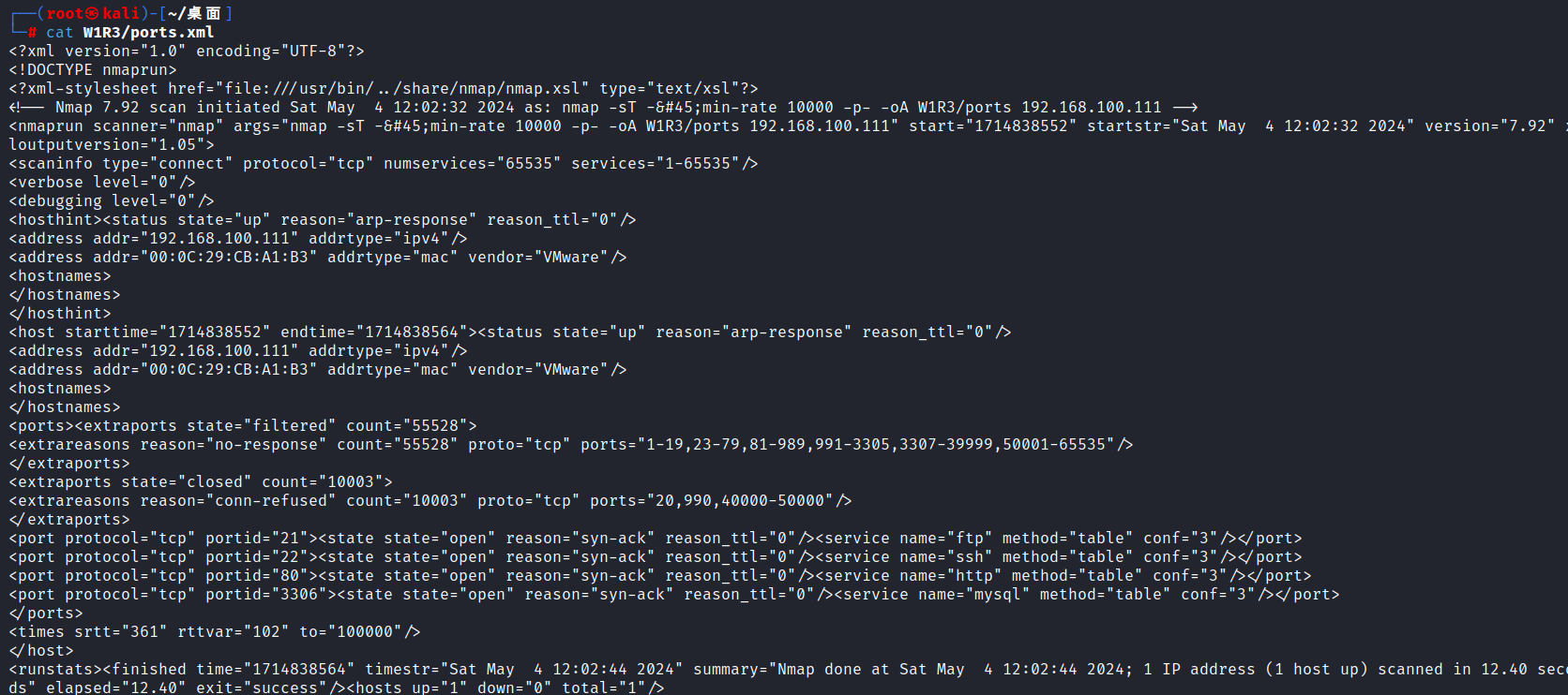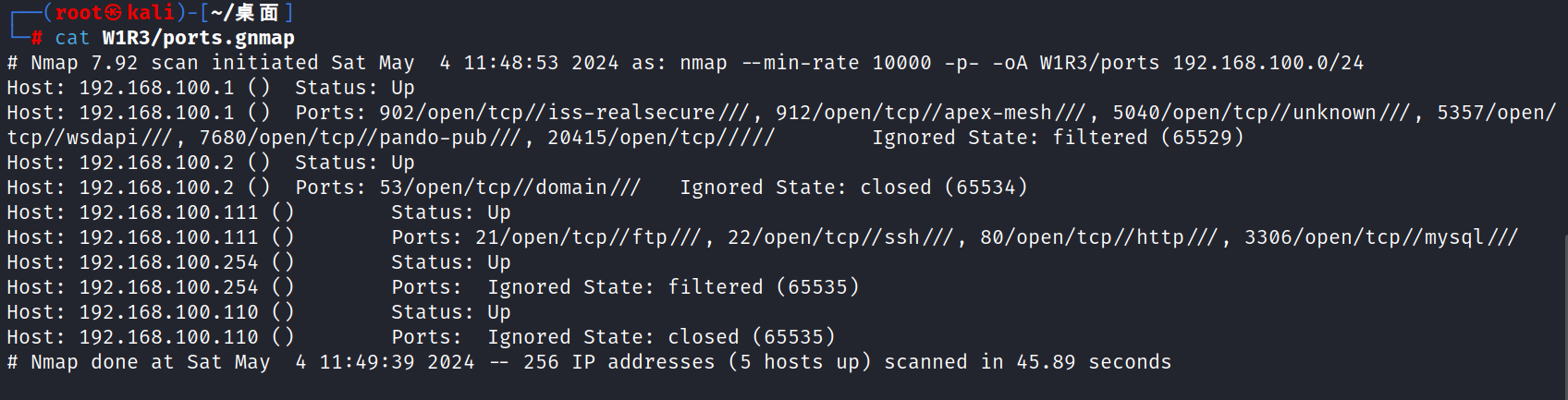 nmap -sT --min-rate 100000 -p- 192.168.100.111 -oA W1R3/ports
