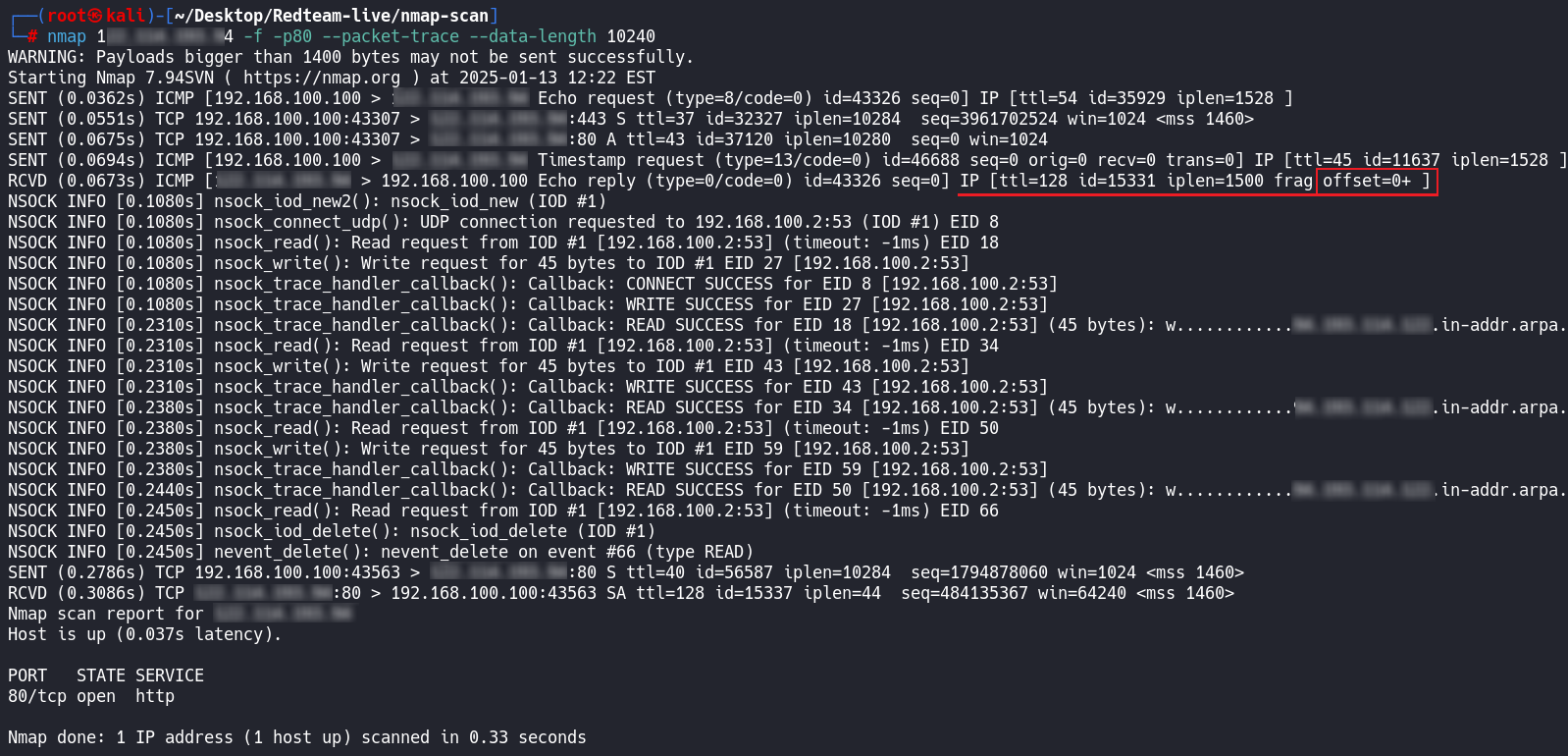 --badsum参数发送伪造校验和包,测试目标防御系统的鲁棒性。结果:确定目标对异常包的处理逻辑,制定后续绕过方案。