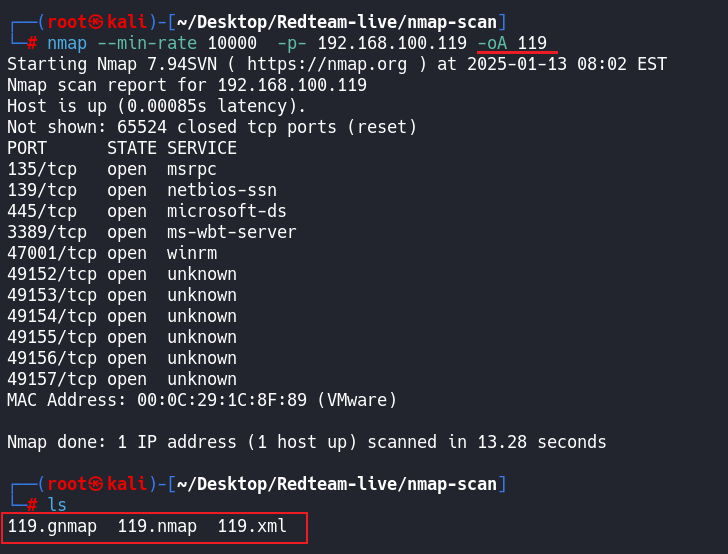 -e <iface>:指定网络接口。-oA <file name>:全部格式都输出结果