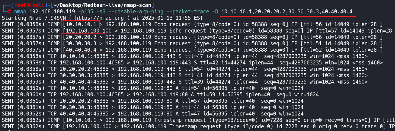 -D <decoy1,decoy2[,ME],...>:伪装扫描来源。