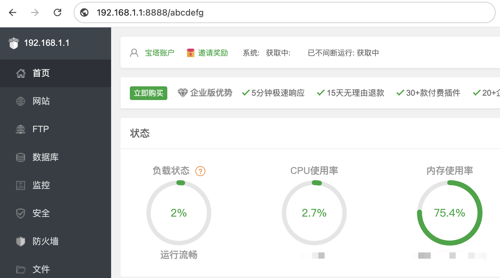 *以下仅为初始默认账户密码,若无法登录请执行bt命令重置账户/密码登录