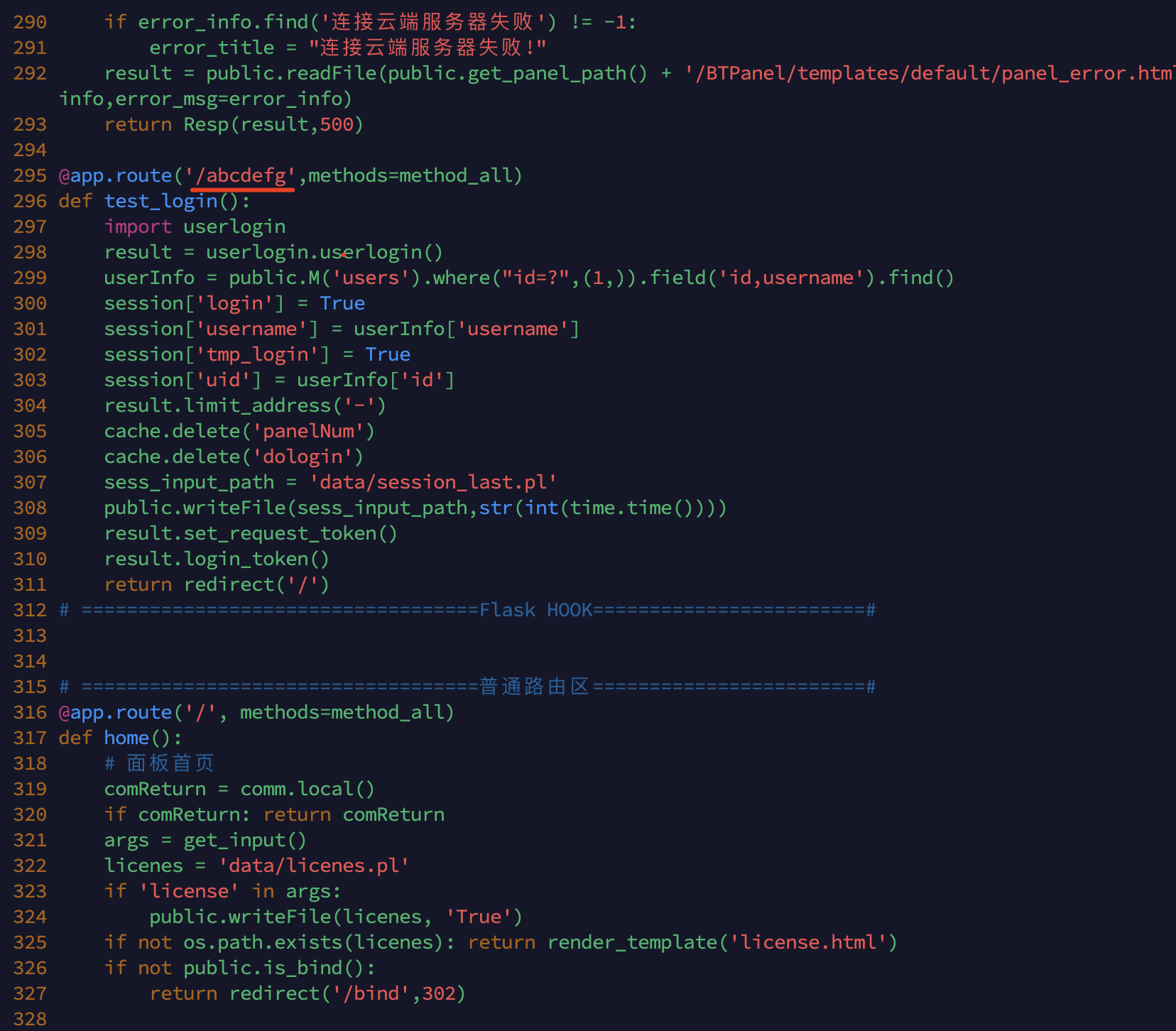 修改文件:/www/server/panel/BTPane/_init_.py 在此区域添加