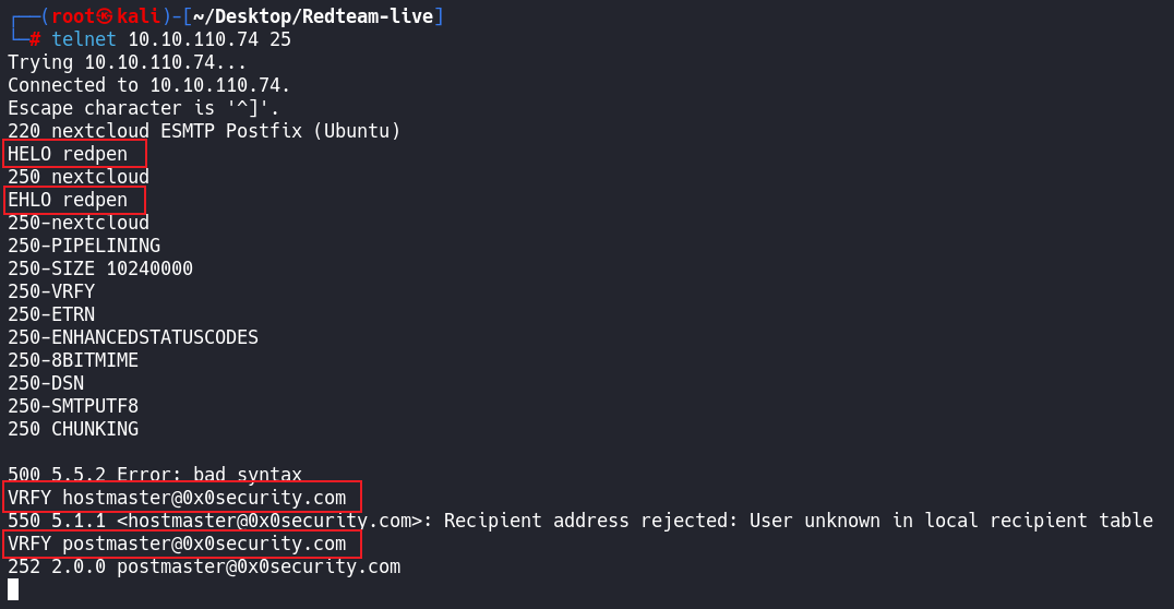 └─# telnet 10.10.110.74 25