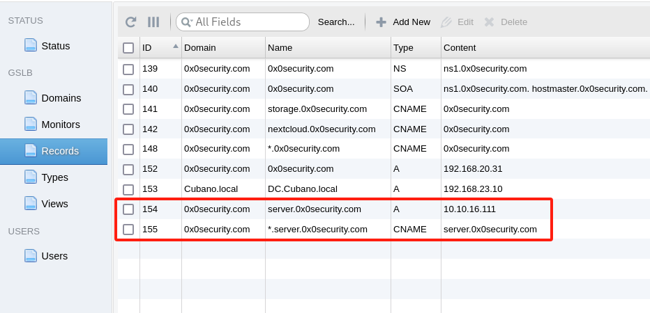 靶场中已获得13号机器(DNS服务器)控制权,可以在0xsecurity域名上解析钓鱼子域名