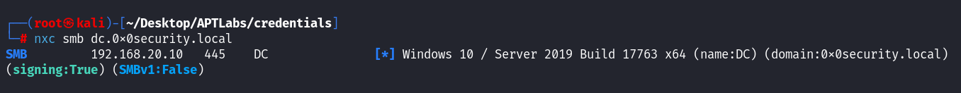 sudo nxc smb dc.0x0security.local(或使用 IP)。