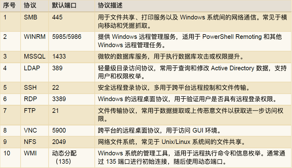 批量信息收集/后渗透: 获取凭据后,批量执行枚举(用户、组、共享、SAM/LSA/NTDS dump)、命令执行等。