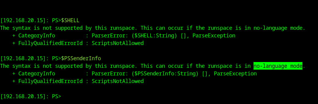 即使通过 Enter-PSSession 成功连接,Shell 的行为依然受限:
