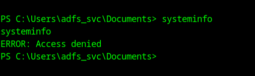 adfs_svc账户的 Shell 权限受限,但其作为 ADFS 服务的运行账户,仍然可能拥有与 ADFS 服务交互、读取其配置、甚至导出相关证书或密钥的特定权限。后续攻击应聚焦于 ADFS 服务本身的漏洞和利用方法。