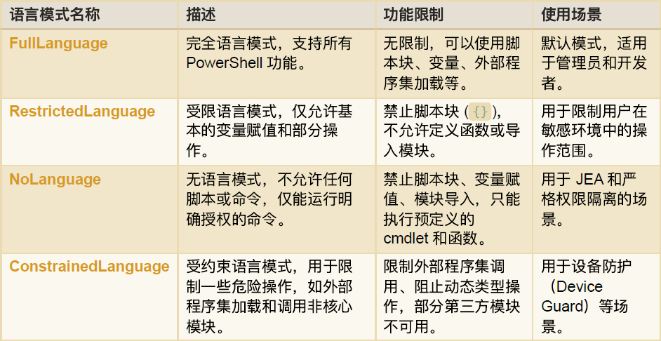JEA 的影响: JEA 允许管理员为非管理员用户(或虚拟账户、gMSA)配置对特定 WinRM 端点(包括 Shell 端点)的访问权限,但同时通过角色能力和语言模式严格限制其在该 Shell 中能执行的操作。