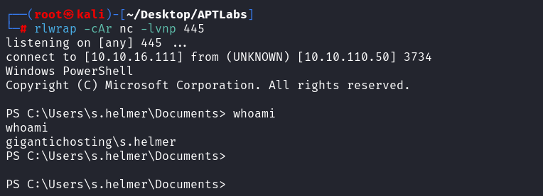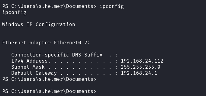 Enter-PSSession -ComputerName 192.168.24.112 -Credential gigantichosting\s.helmer敏感度培养:对目标网络拓扑、域结构、用户和组的关系有深入的理解和记忆,是攻击成功的关键。这需要通过反复的枚举、分析和实践来培养,而不是仅仅依赖工具的自动化输出。