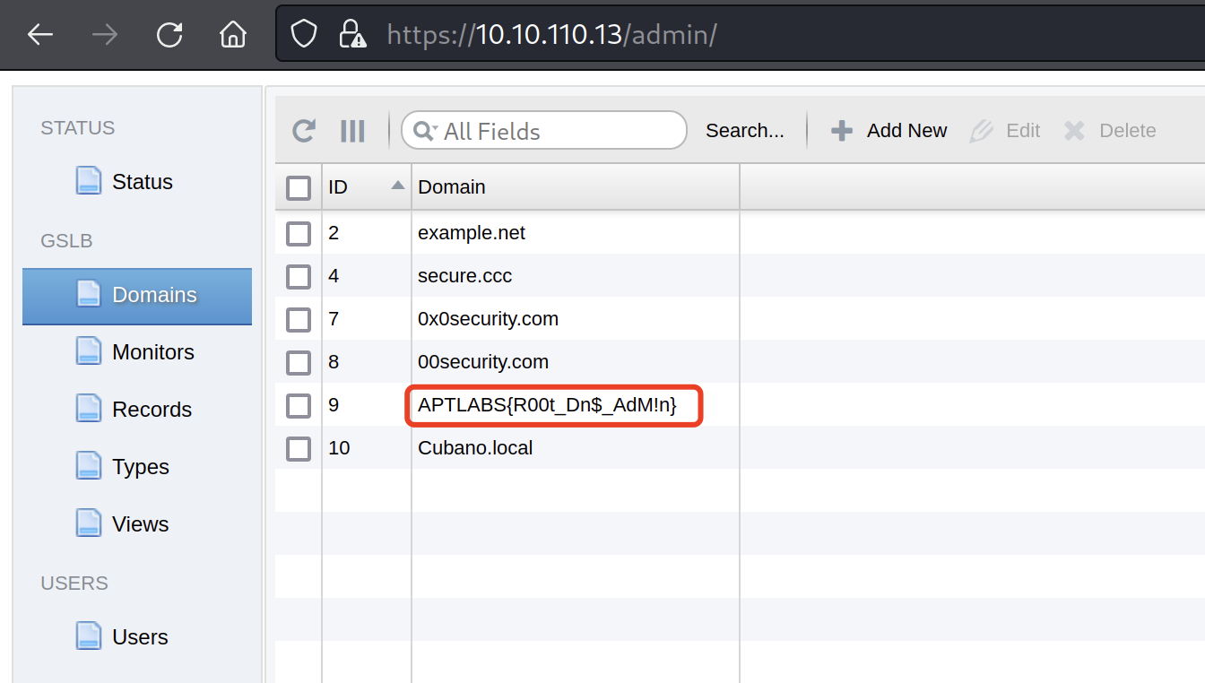 https://10.10.110.13/admin,发现Server: PowerDNS,查文档确认默认路径。