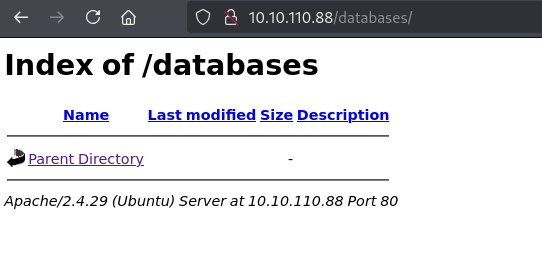 curl http://10.10.110.88/db检查文件。┌──(root㉿kali)-[~/Desktop/APTLabs] └─# nmap --min-rate 10000 -p- 10.10.110.88 Starting Nmap 7.94SVN ( https://nmap.org ) at 2025-03-05 11:51 EST Nmap scan report for 10.10.110.88 Host is up (0.87s latency). Not shown: 65534 filtered tcp ports (no-response) PORT STATE SERVICE 80/tcp open http Nmap done: 1 IP address (1 host up) scanned in 19.28 seconds┌──(root㉿kali)-[~/Desktop/APTLabs] └─# nmap -sT -sC -sV -O -p80 10.10.110.88 Starting Nmap 7.94SVN ( https://nmap.org ) at 2025-03-05 11:51 EST Nmap scan report for 10.10.110.88 Host is up (0.59s latency). PORT STATE SERVICE VERSION 80/tcp open http Apache httpd 2.4.29 ((Ubuntu)) | http-cookie-flags: | /: | PHPSESSID: |_ httponly flag not set |_http-server-header: Apache/2.4.29 (Ubuntu) |_http-title: DataLeaks Warning: OSScan results may be unreliable because we could not find at least 1 open and 1 closed port OS fingerprint not ideal because: Missing a closed TCP port so results incomplete No OS matches for host OS and Service detection performed. Please report any incorrect results at https://nmap.org/submit/ . Nmap done: 1 IP address (1 host up) scanned in 41.59 seconds