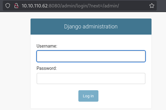 dirb http://10.10.110.62:8080发现/admin,确认Django。