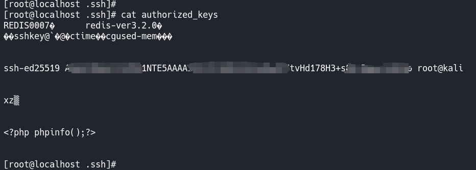 漏洞原理:在数据库中插入一条数据,将本机的公钥作为value,key值随意,然后通过修改数据库的默认路径为/root/.ssh和默认的缓冲文件authorized.keys,把缓冲的数据保存在文件里,这样就可以在服务器端的/root/.ssh下生成一个授权的key。