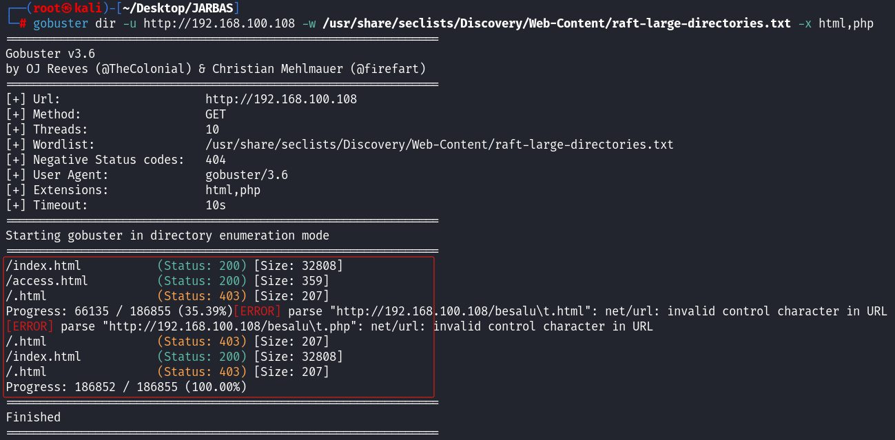 dirb http://192.168.100.108