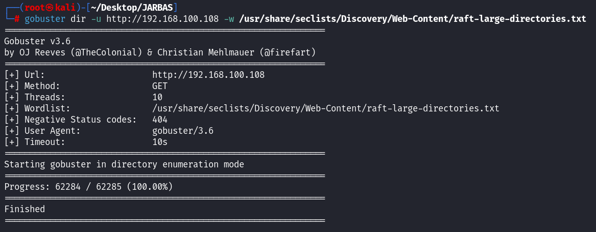 gobuster dir -u http://192.168.100.108 -w /usr/share/seclists/Discovery/Web-Content/raft-large-directories.txt