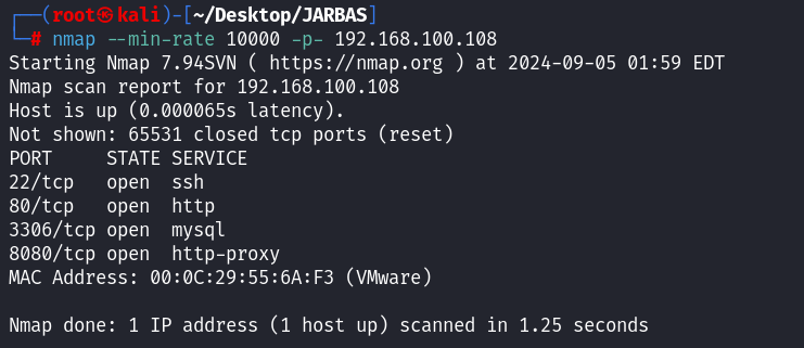 nmap --min-rate 10000 -p- 192.168.100.108