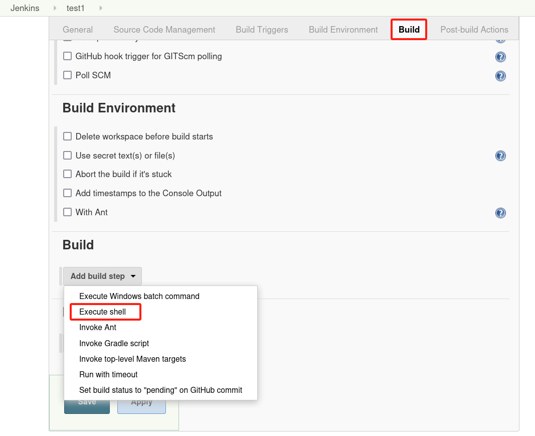 在构建这里可以选择执行shell