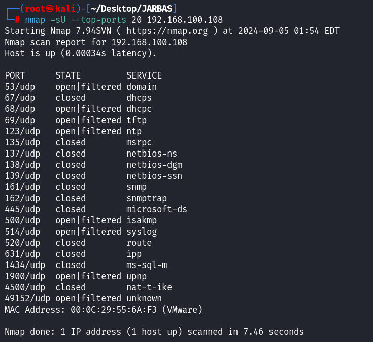 nmap -sU --top-ports 20 192.168.100.108