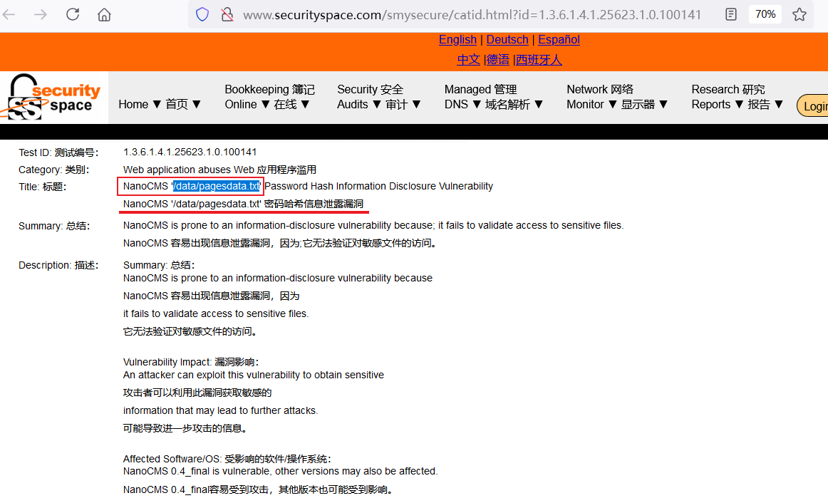 除了在searchsploit上搜到的那个需要授权的,还有俩是关于/data/pagesdata.txt泄露的