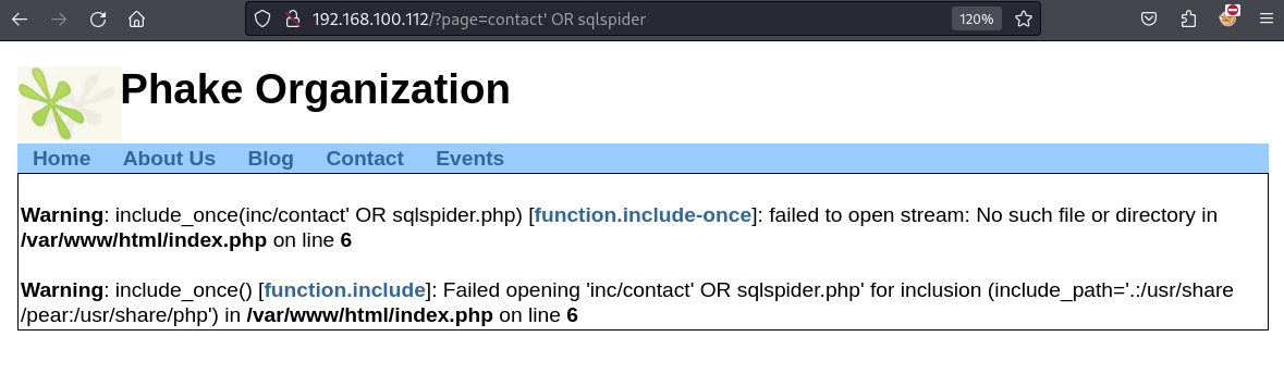 | http://192.168.100.112:80/?page=contact%27%20OR%20sqlspider