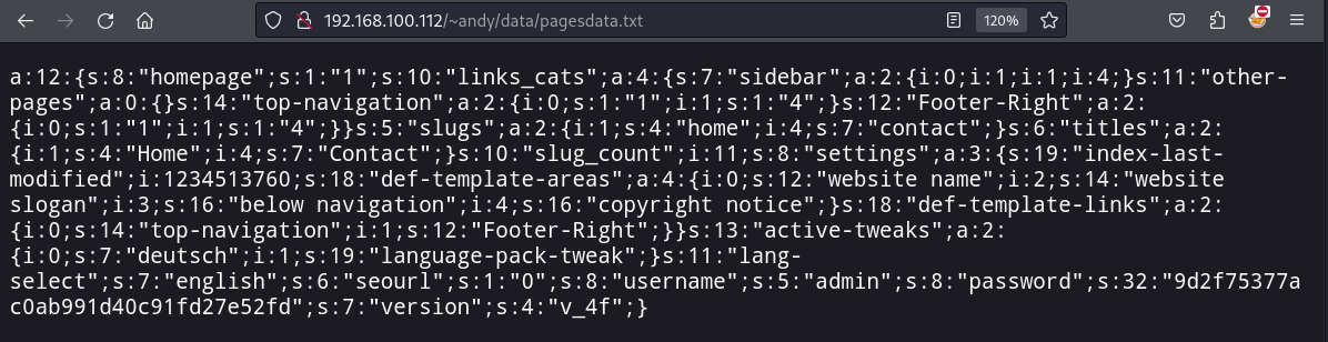 "username";s:5:"admin";s:8:"password";s:32:"9d2f75377ac0ab991d40c91fd27e52fd"