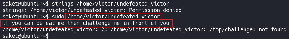/home/victor/undefeated_victor: 2: /home/victor/undefeated_victor: /tmp/challenge: not found