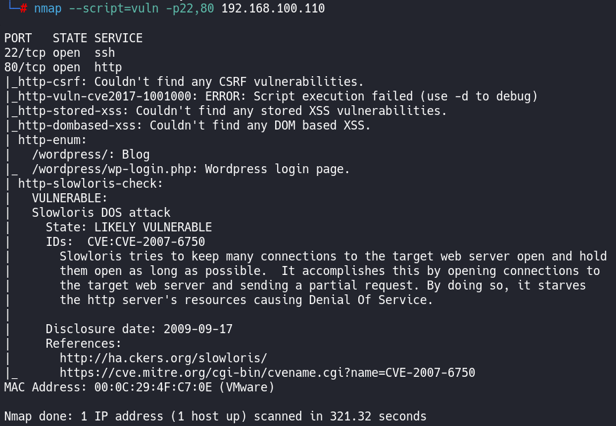 ---- Entering directory: http://192.168.100.110/wordpress/ ----